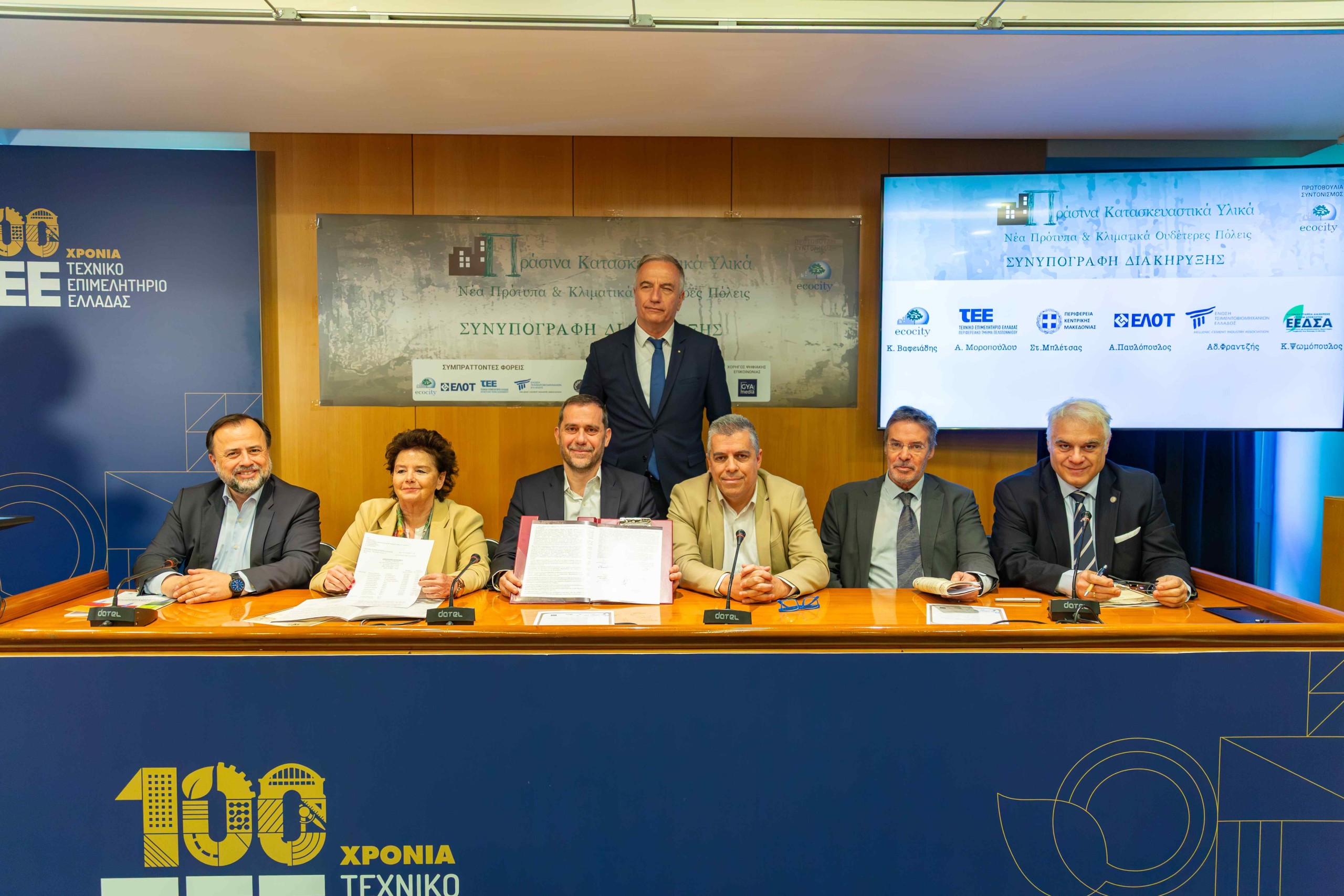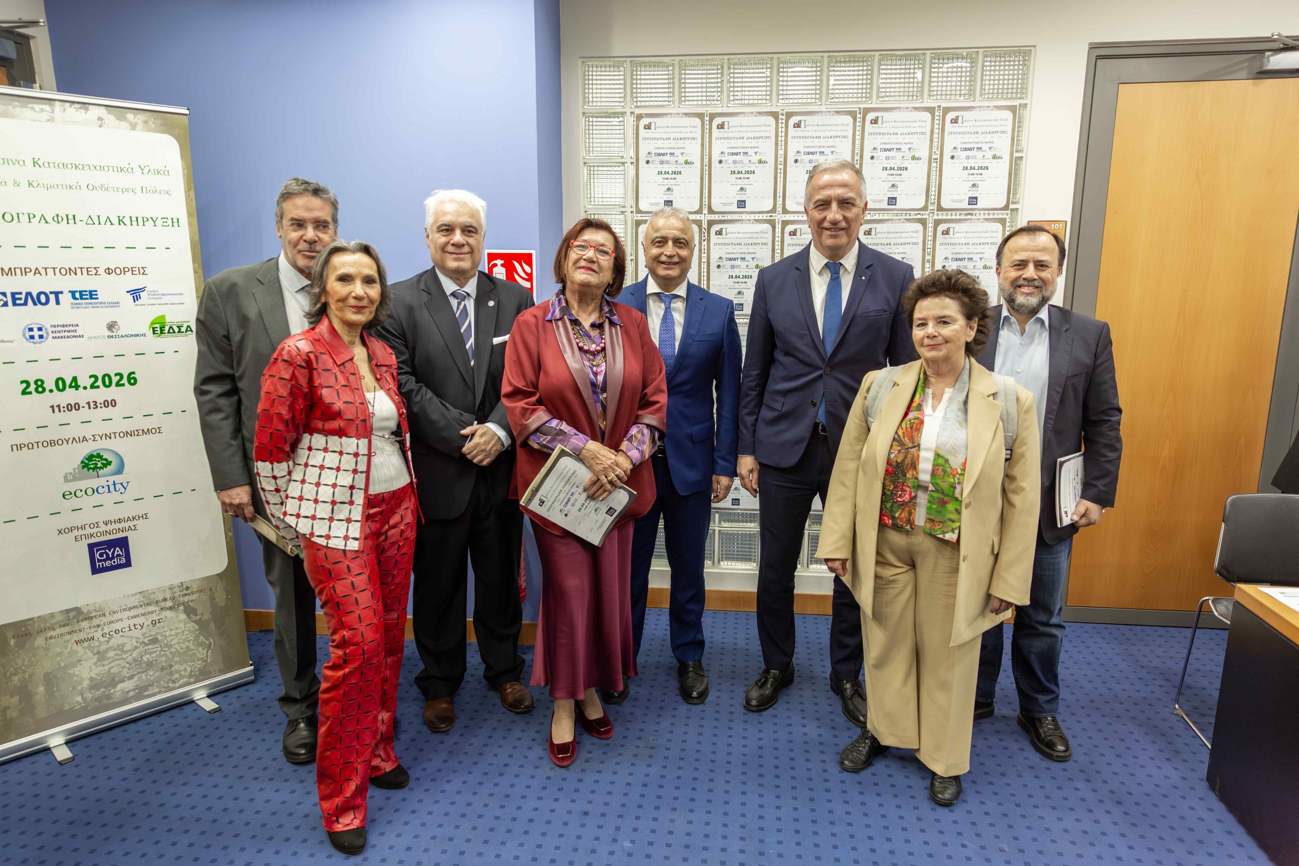 Το ECOCITY, ο ΕΛΟΤ, το ΤΕΕ, η Ένωση Ελληνικών Τσιμεντοβιομηχανιών, η Περιφέρεια Δυτικής Ελλλαδας και η ΕΕΔΣΑ συνυπέγραψαν την Διακήρυξη «Πράσινα Κατασκευαστικά Υλικά – Νέα Πρότυπα και Κλιματικά Ουδέτερες Πόλεις» την Τρίτη 28 Απριλίου 2026.
