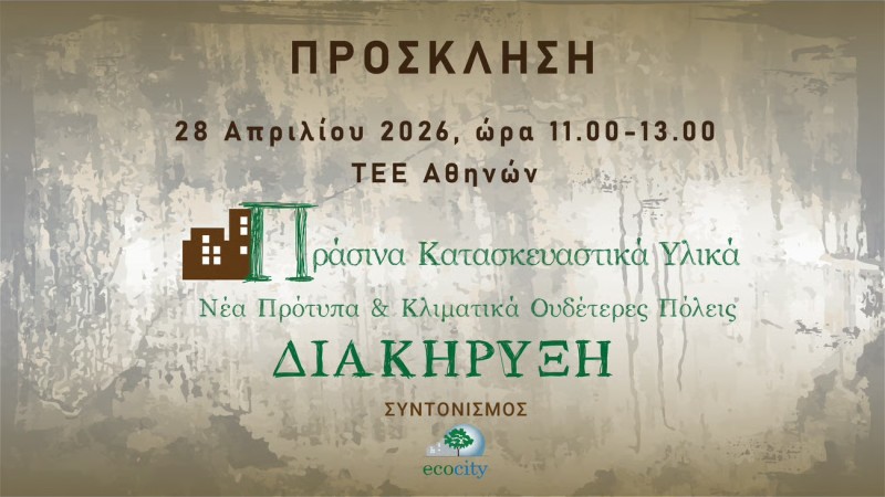 Πράσινα Κατασκευαστικά Υλικά – Διακήρυξη – 28 Απριλίου 2026