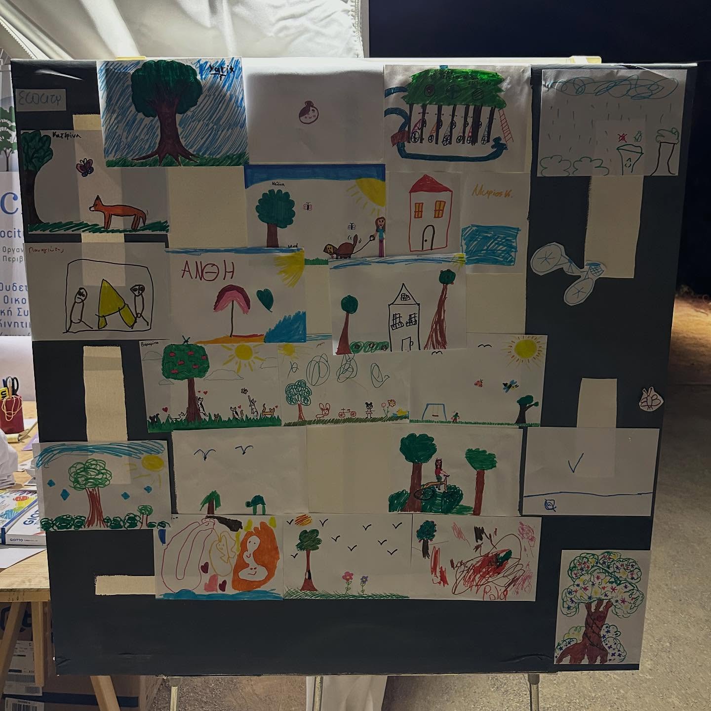 - Ο πρώτος καμβάς, αφιερωμένος στο πρόγραμμα ECOMOBILITY, προσκάλεσε τα παιδιά να ζωγραφίσουν την πόλη των ονείρων τους — μια πόλη πράσινη, ασφαλή και φιλική προς όλους.